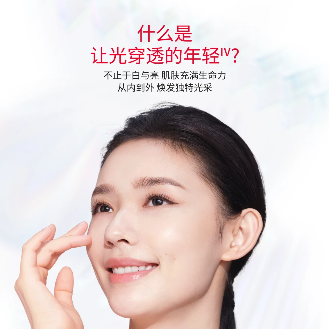 - 让光穿透的年轻: 指紧致和保湿功效的创意表达。